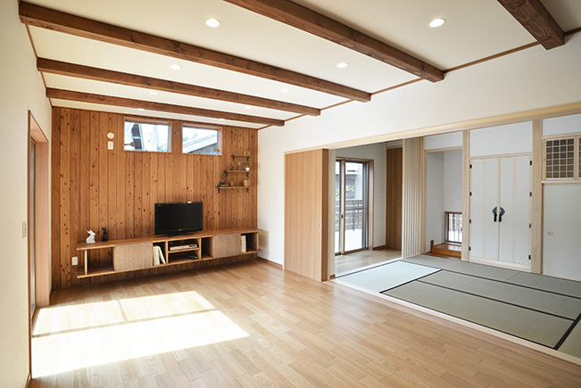 新 築 意匠美が光る家 弊社の和モダン住宅を気に入ってくださり、ご相談いただきました。表面的な要素だけでなく、建築意匠にいたるまで和の要素を意識してご提案。通り抜けの庭や土間、抜き抜けの廊下などを取り入れつつ、デザインにはモダンな要素を程よく組み合わせました。 今ではスタンダードではない手法を多く取り入れているため、お客様も興味津々でお家を見ていかれるんだとか。 用途/住宅 構造/2階建て 所在地/碧南市 施工事例一覧