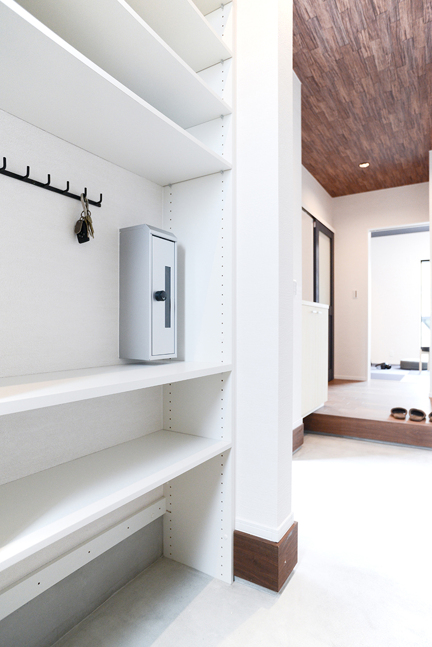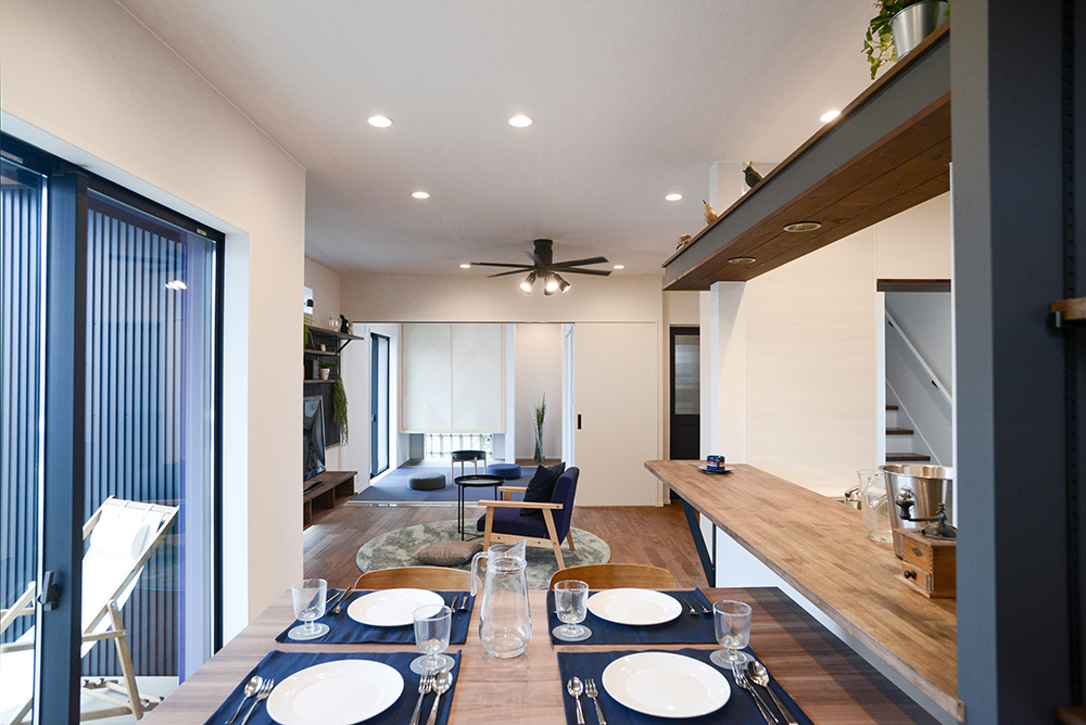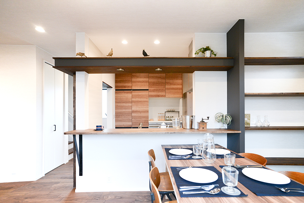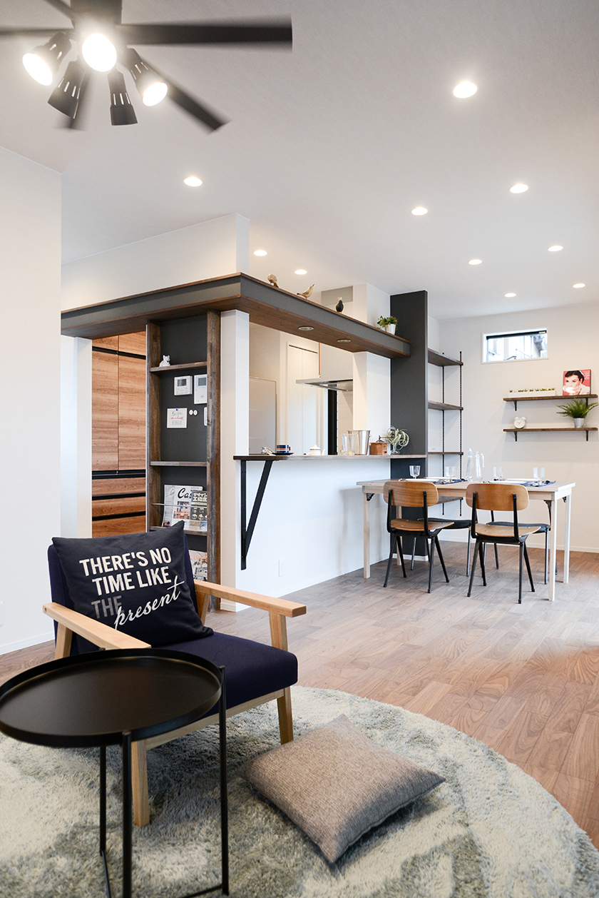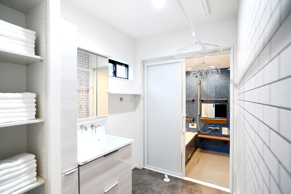 共働きのご夫婦が家事育児を分担しやすい動線を設計。私たちが提案したのは、ひとりで家事を同時進行する「ついで家事の導線」ではなく、各々が同時に家事育児を進行できるように導線を交わらせないこと。 例えばキッチンと洗面所を分けて「ちょっと通るね」のストレスを排除。でも、気配や声が届く間取りにすれば要所に応じて協力もしやすくなります。階段下にはワンちゃん専用スペースを。リビングの一角を使うことで、来客時でも一体感を感じられる工夫をしました。