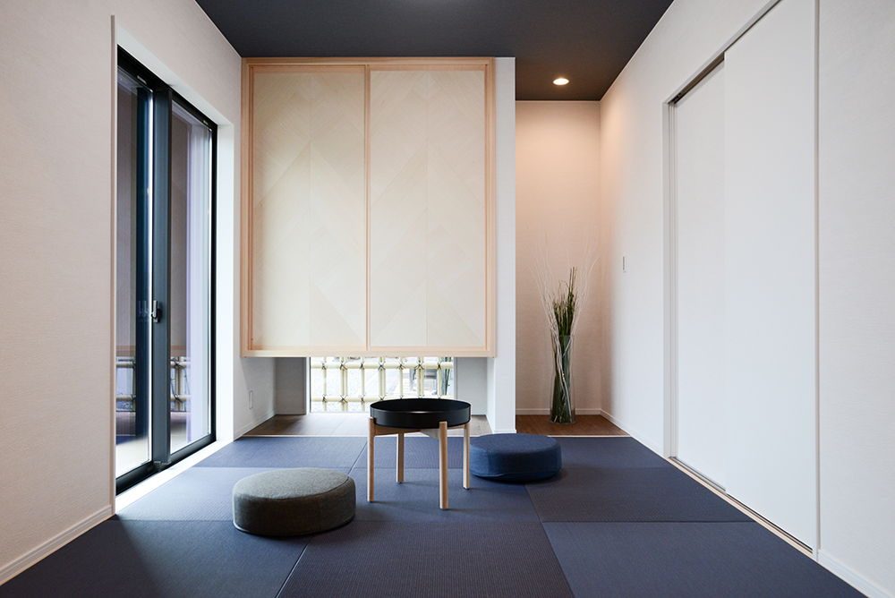 共働きのご夫婦が家事育児を分担しやすい動線を設計。私たちが提案したのは、ひとりで家事を同時進行する「ついで家事の導線」ではなく、各々が同時に家事育児を進行できるように導線を交わらせないこと。 例えばキッチンと洗面所を分けて「ちょっと通るね」のストレスを排除。でも、気配や声が届く間取りにすれば要所に応じて協力もしやすくなります。階段下にはワンちゃん専用スペースを。リビングの一角を使うことで、来客時でも一体感を感じられる工夫をしました。