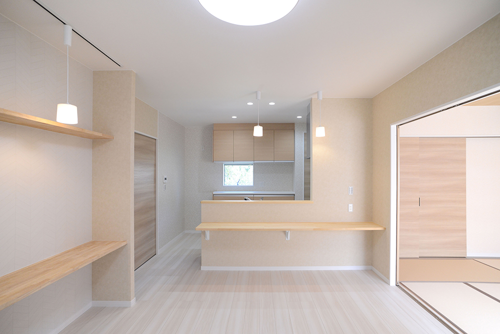 新 築 おしゃれな二世帯住宅 ご夫婦とお子様2人の世帯と祖父母世帯の2世帯住宅。共有空間を限定捨代わりに、デザインの統一感で共有意識を楽しめるよう工夫しました。どちらの世帯も優しい木のマテリアルをベースに設計。過ごす場所は別々でも、まるで空間の続きのように感じられるので安心感を得られます。 用途/住宅 構造/2階建 所在地/豊田市 施工事例一覧
