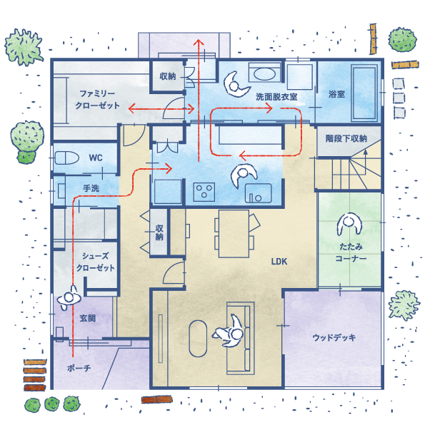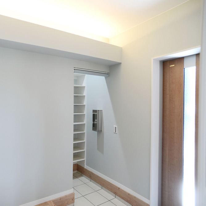 玄関〜LDKの動線に独立した手洗いを設置。帰宅後の手洗いが自然と習慣化されます。