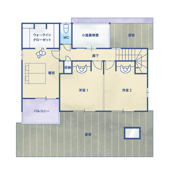 屋根の勾配を活かして収納空間に。ココワホームが得意はコスパの良い間取りです。