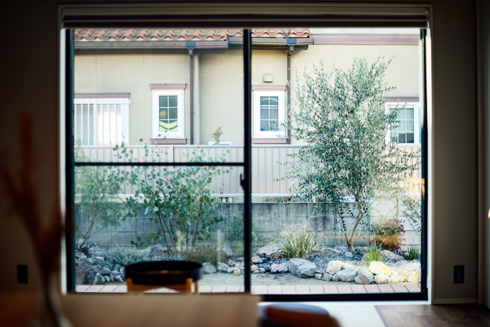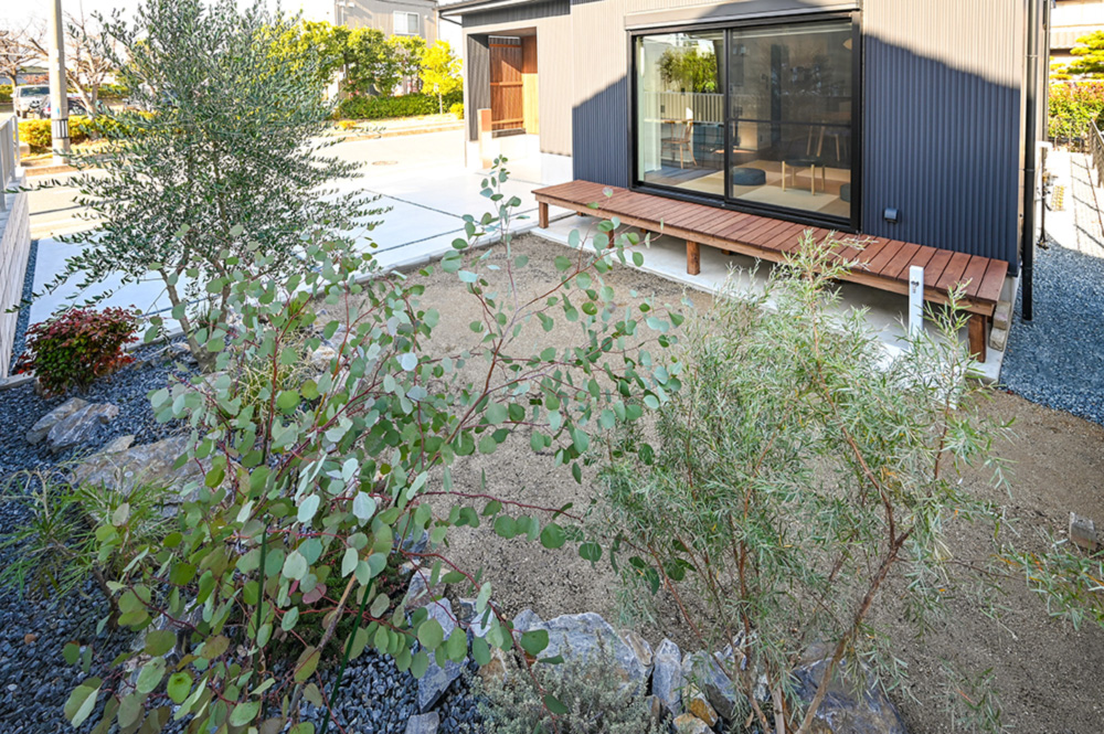 花壇、芝生、カーポートなど